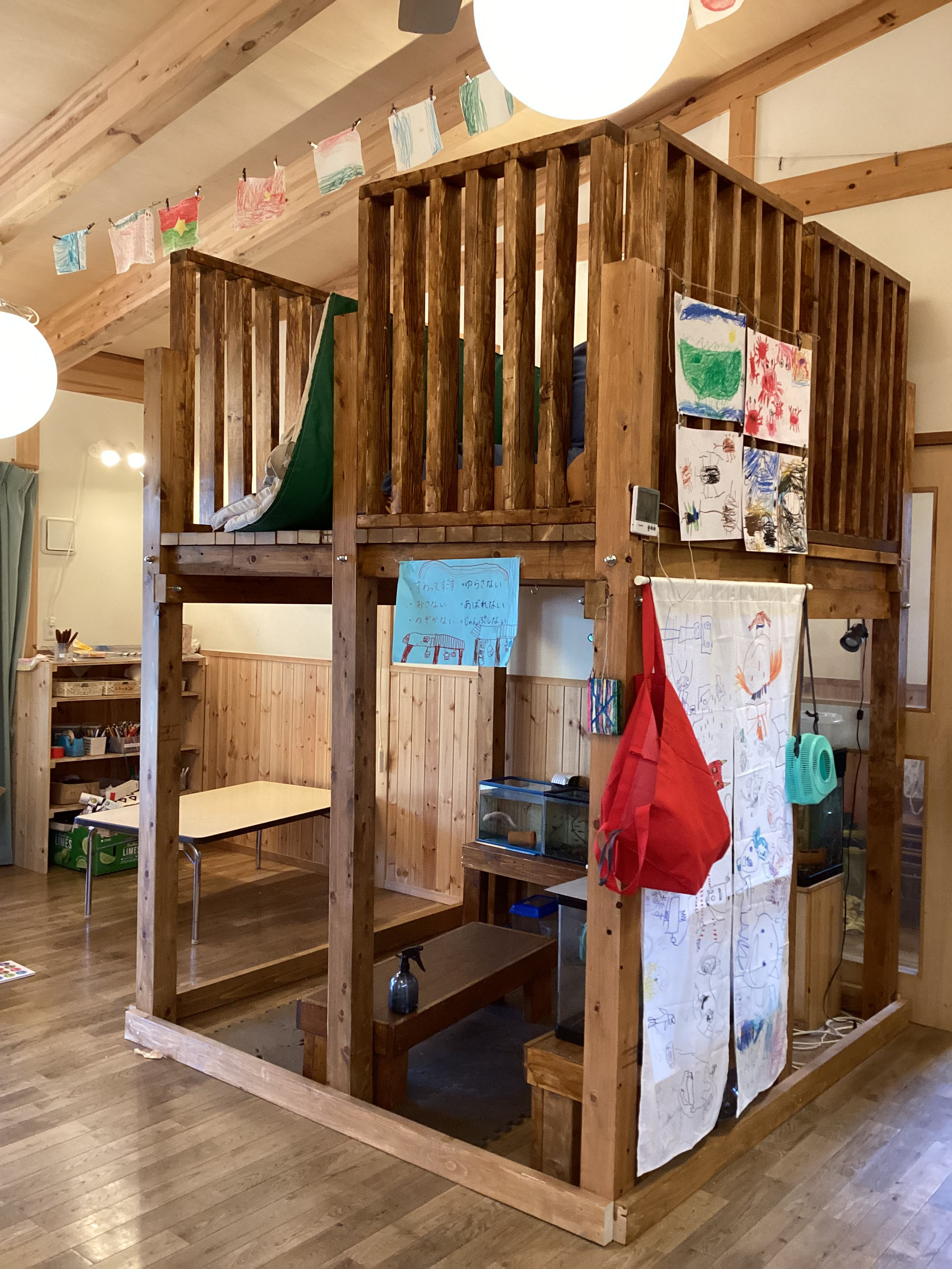 階段やはしごは無いので自分の力で登った人だけが2階で遊びます。