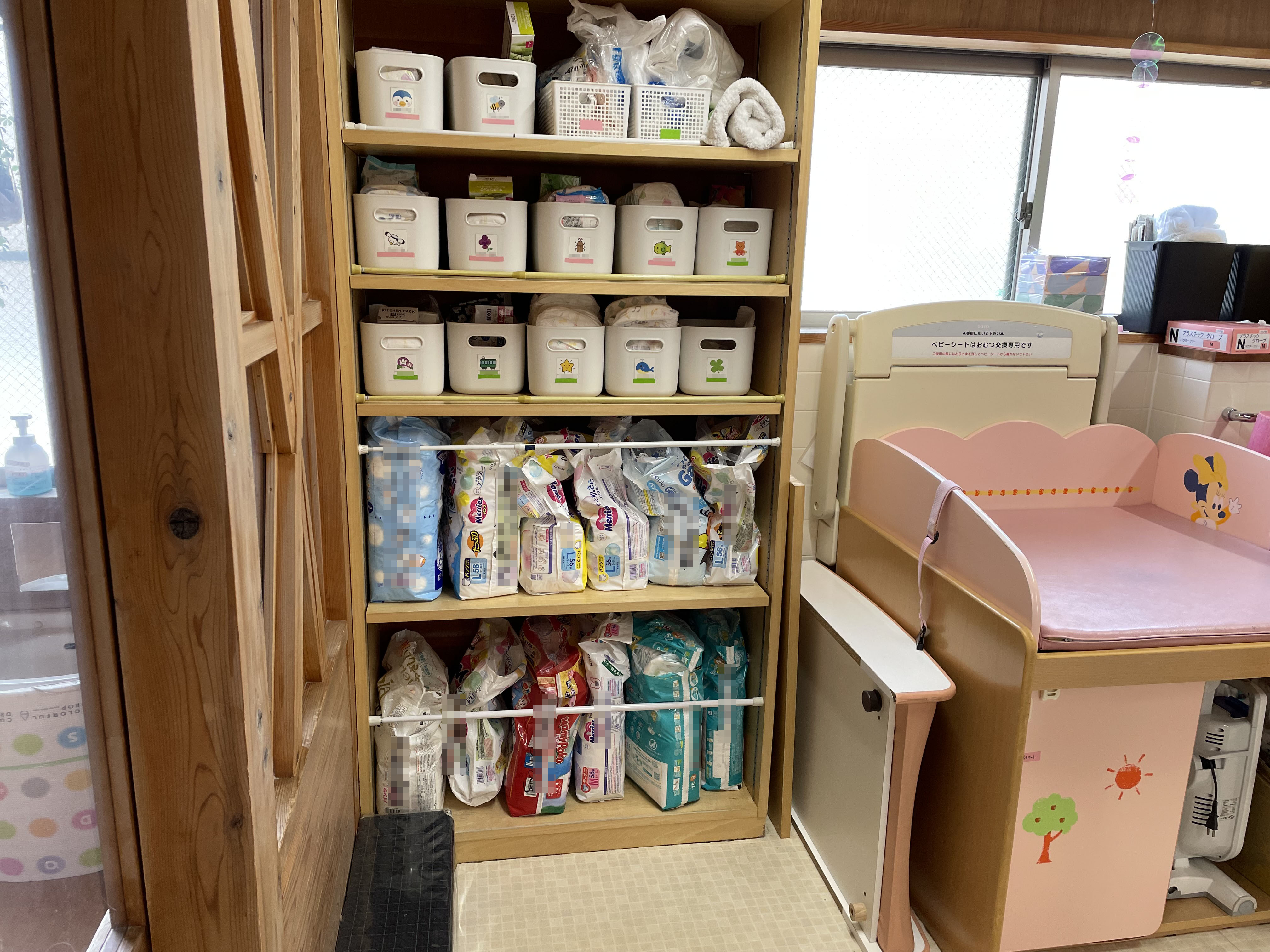 オムツは1パックをお家からもってきてもらい、保育士が補充しています。