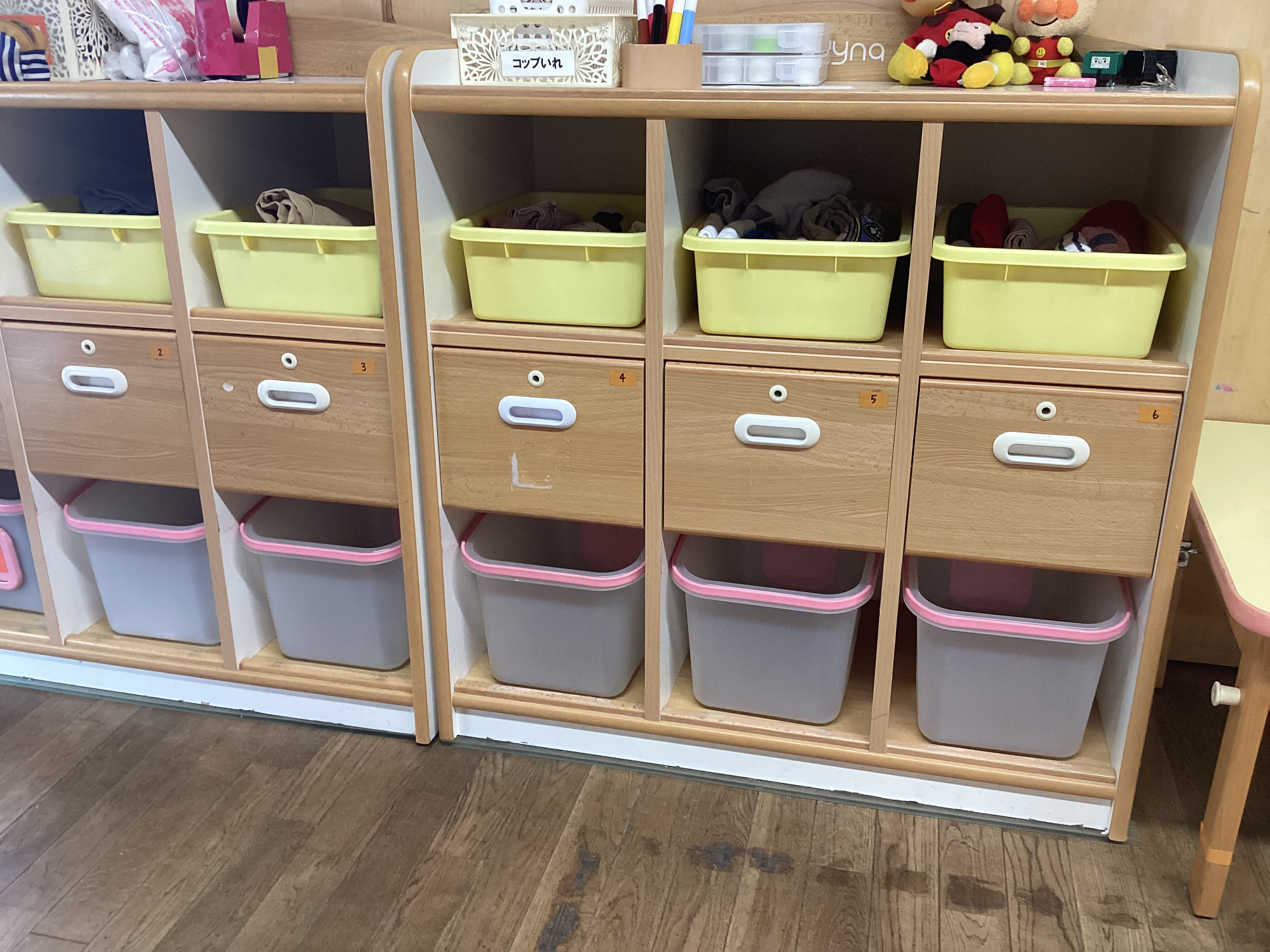 黄色いケースには着替えが入っています。自分で服を選んで取り出すなど