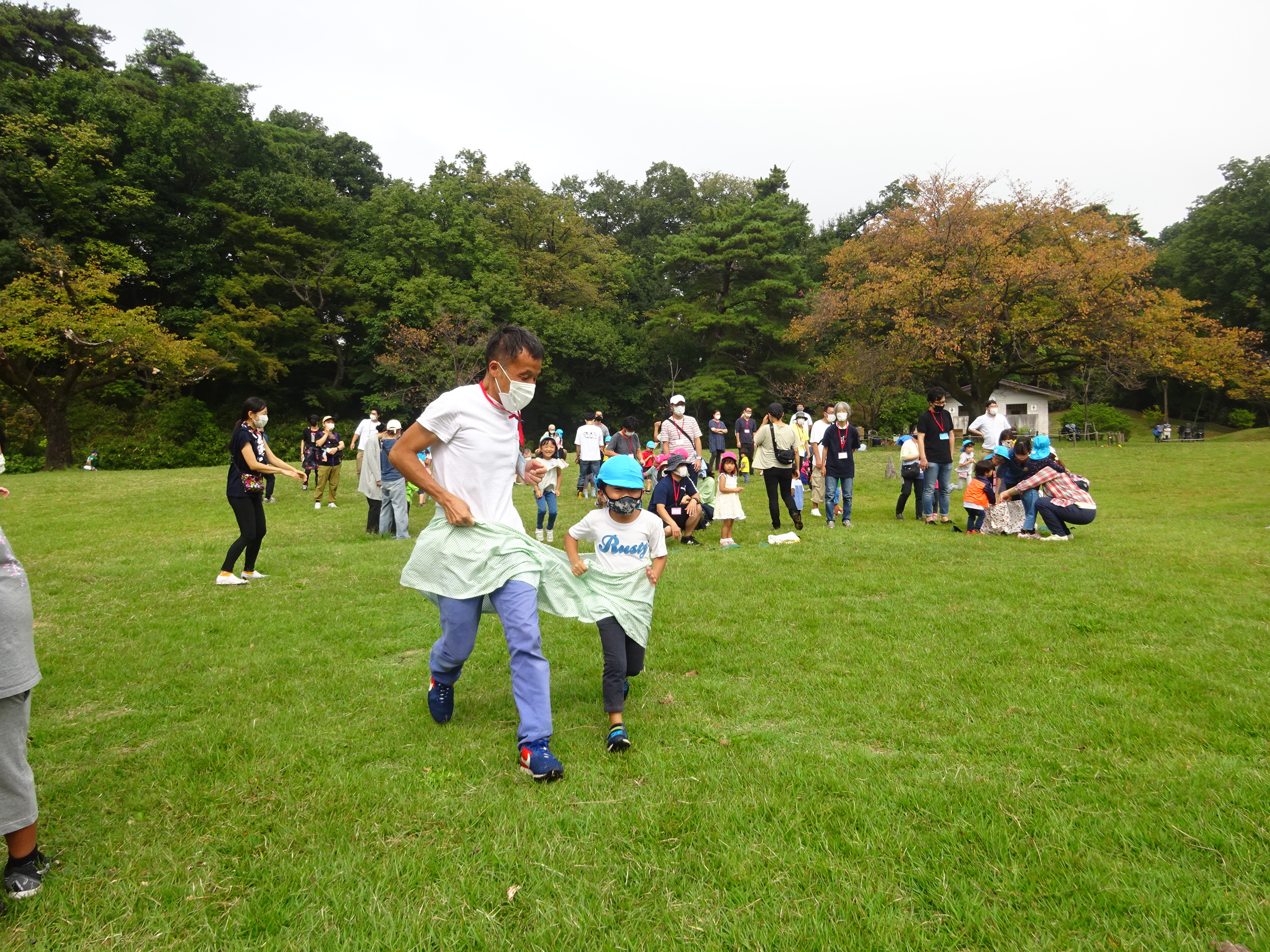 地域の公園に集まって親子で遊びます。家族同士が交流する機会でもあります。