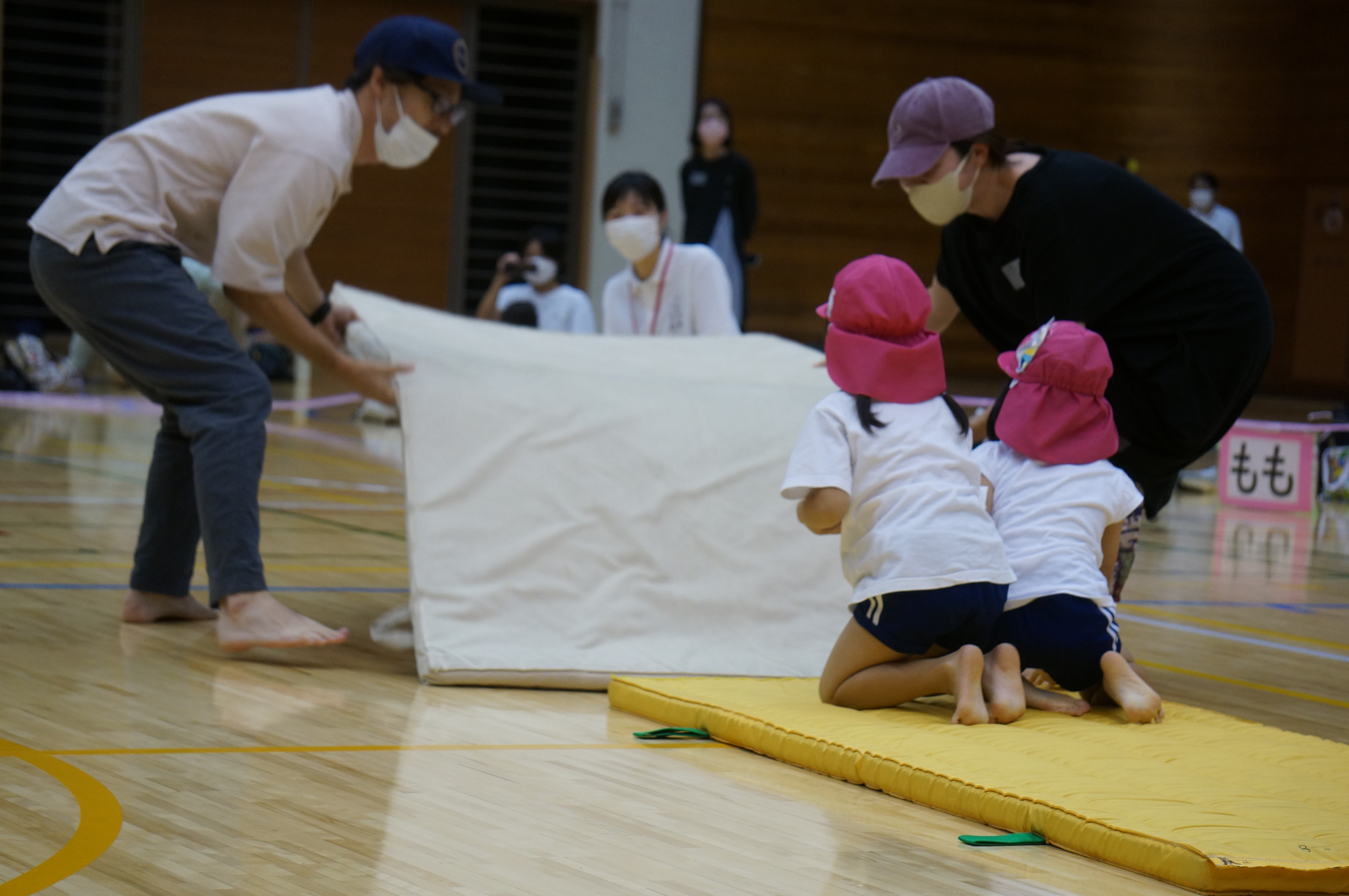 隣のちゅうりっぷ組とは仕切りを開けて一緒に遊んでいます。